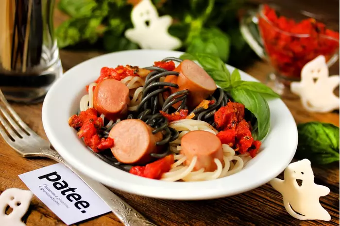 Запеканка из феттуччине с легкой руки повара легко может превратиться в зловешую мумию, плавящуюся на сковороде. Стоит только аккуратно уложить верхний слой пасты, имитируя бинты, и добавить пару безумных глаз из белка вареного яйца и кружочков оливки.