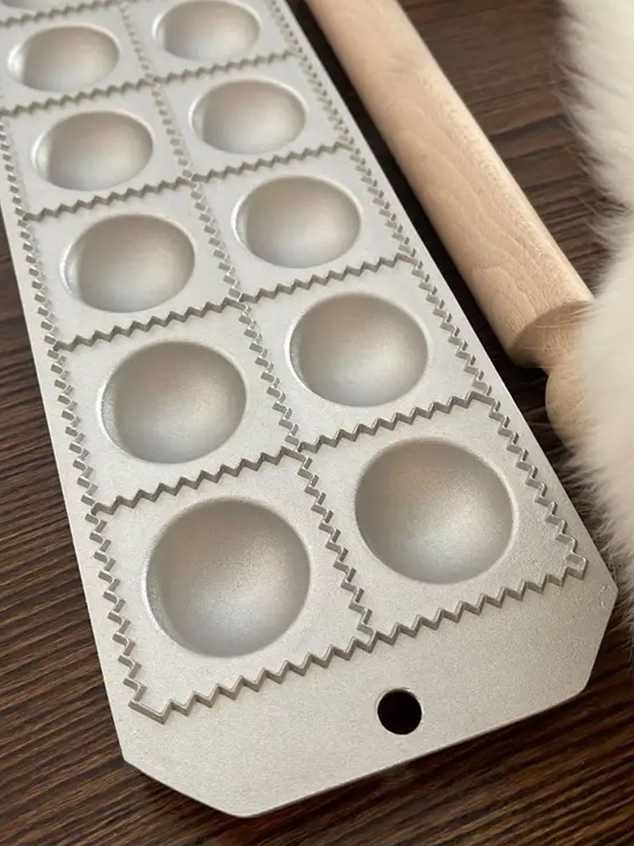 Форма алюминиевая для приготовления 12 круглых равиоли Eppicotispai 52х52 мм. со скалкой