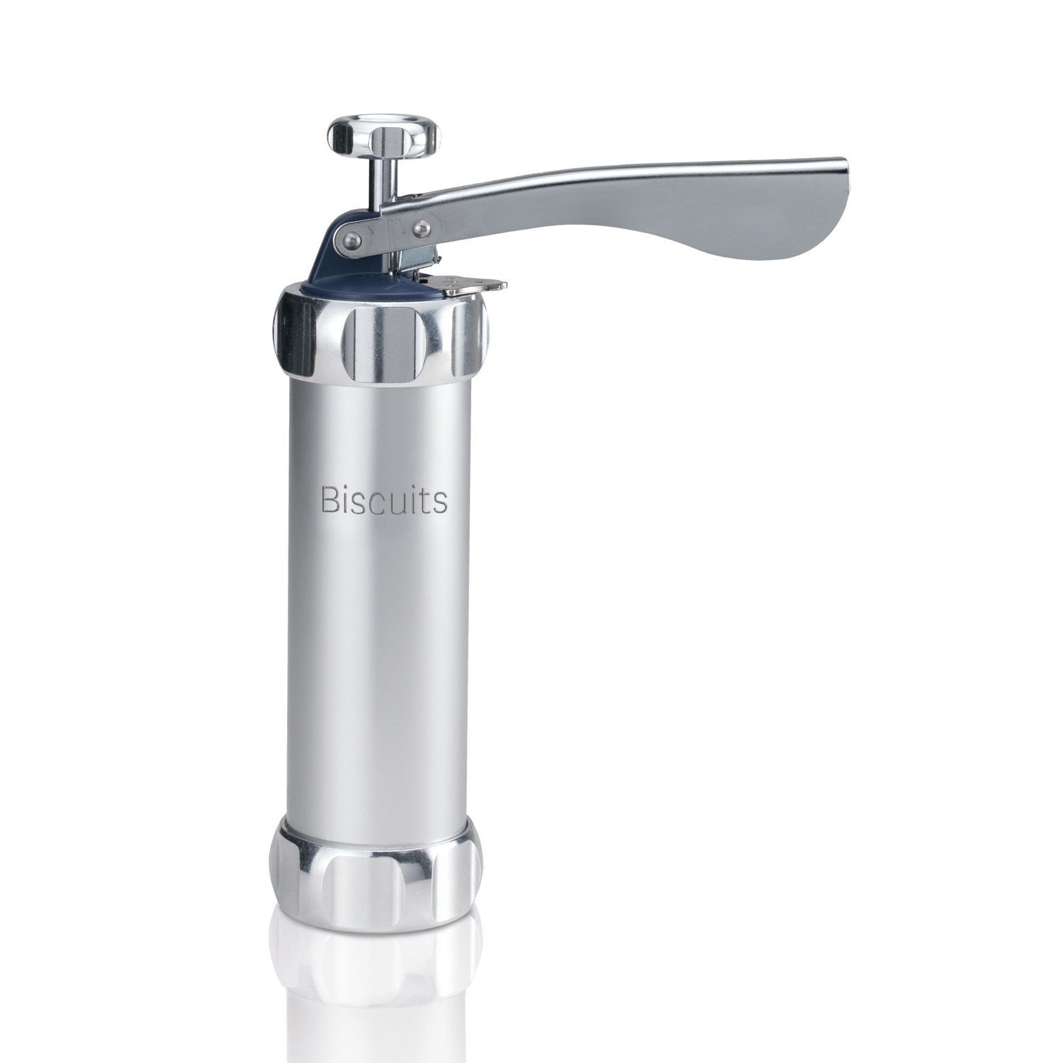 Biscuits Classic - кондитерский пресс-шприц итальянской компании Marcato. Шприц изготовлен в Италии из пищевого анодированного алюминия. Шприц имеет удобную в использовании конструкцию. В комплекте с шприцем поставляются насадки, которые позволяют делать печение различных форм и размеров. Поворотный регулятор поможет вам задавать нужный размер и вес печенья. В комплекте с кондитерским шприцем поставляется 20 насадок и инструкция с рецептами. Кондитерский шприц предназначен для домашнего использования. После использования, шприц можно мыть как вручную так и в посудомойке. Объем шприца: 450 мл. Высота: 210мм Диаметр 65 мм.