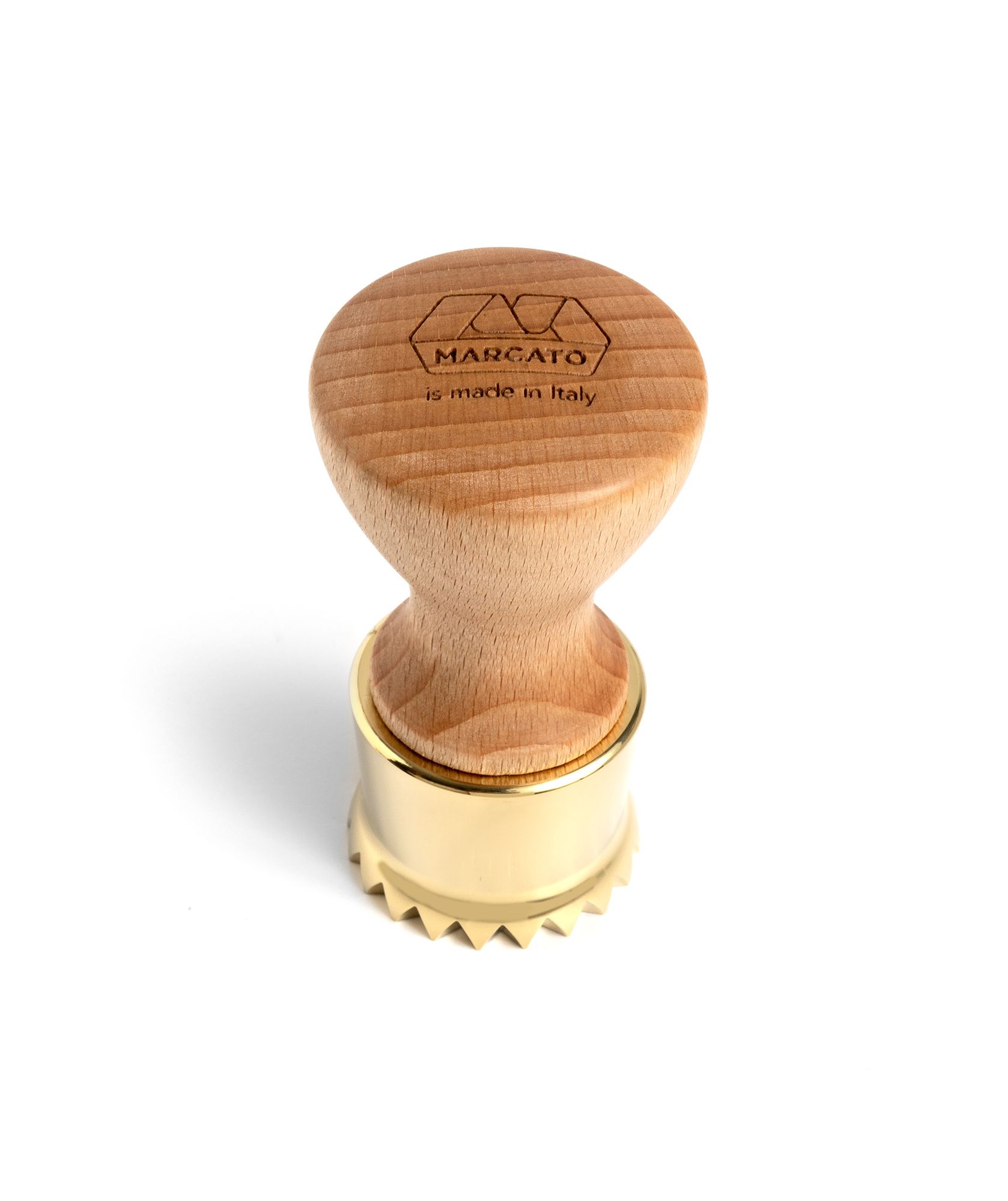 Круглый штамп для равиоли, срез с лепестками, диаметр 38 мм. Цвет- золото. Изготовлено компанией Marcato непосредственно в Италии из материалов высшего качества. Этот штамп можно будет передать в наследство! Корпус штампа для равиоли изготовлен из латуни, чтобы гарантировать чистый срез теста. Механизм выталкивания с пружинным приводом из анодированного алюминия предназначен для равномерного прессования начинки и получения идеальной формы. Ручка штампа вырубки выполнены из массива твёрдого дерева бук, с отделкой натуральным воском и лазерной гравировкой. Она имеет эргономичную форму, что делает ручку стабильной и простой в использовании. Может использоваться для равиоли, печенья, пельменей. Металлическая форма для вареников и пельменей, пресс для теста на деревянной ручке. Товар показан на первом фото в карточке. В видео к товару демонстрируется, как сделать равиоли с помощью различных штампов этой уникальной серии.