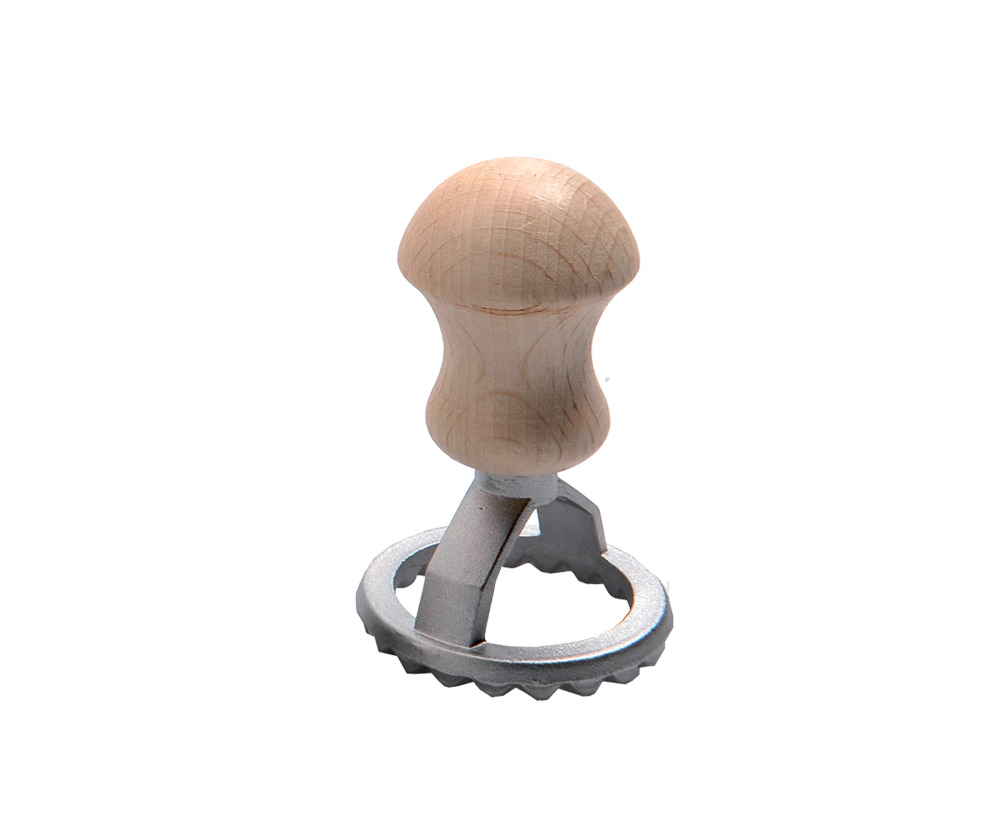 Штампик круглый для равиоли / печенья итальянского бренда Eppicotispai. Размер рабочей поверхности - 40мм. Материал - алюминий, бук.