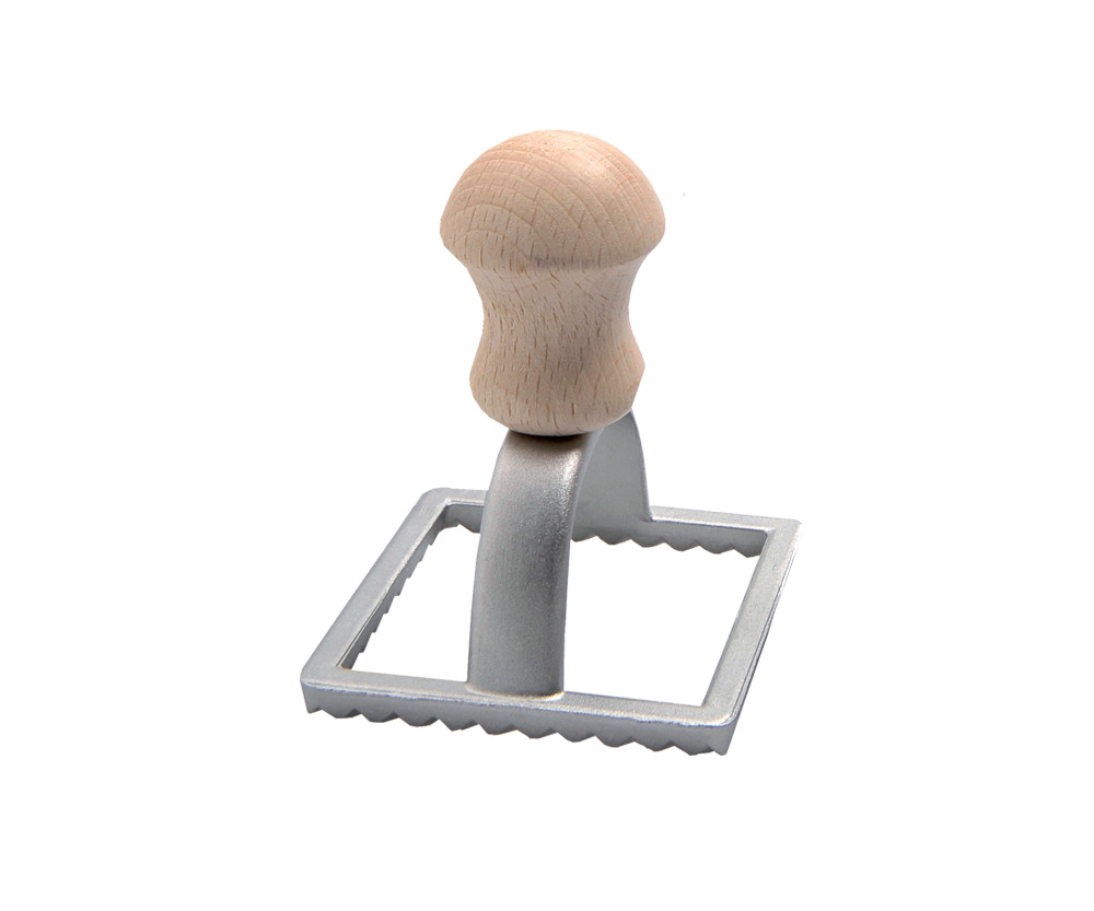 Штампик квадратный для равиоли / пиццы / печенья итальянского бренда Eppicotispai. Размер рабочей поверхности - 70x70мм. Материал - алюминий, бук.