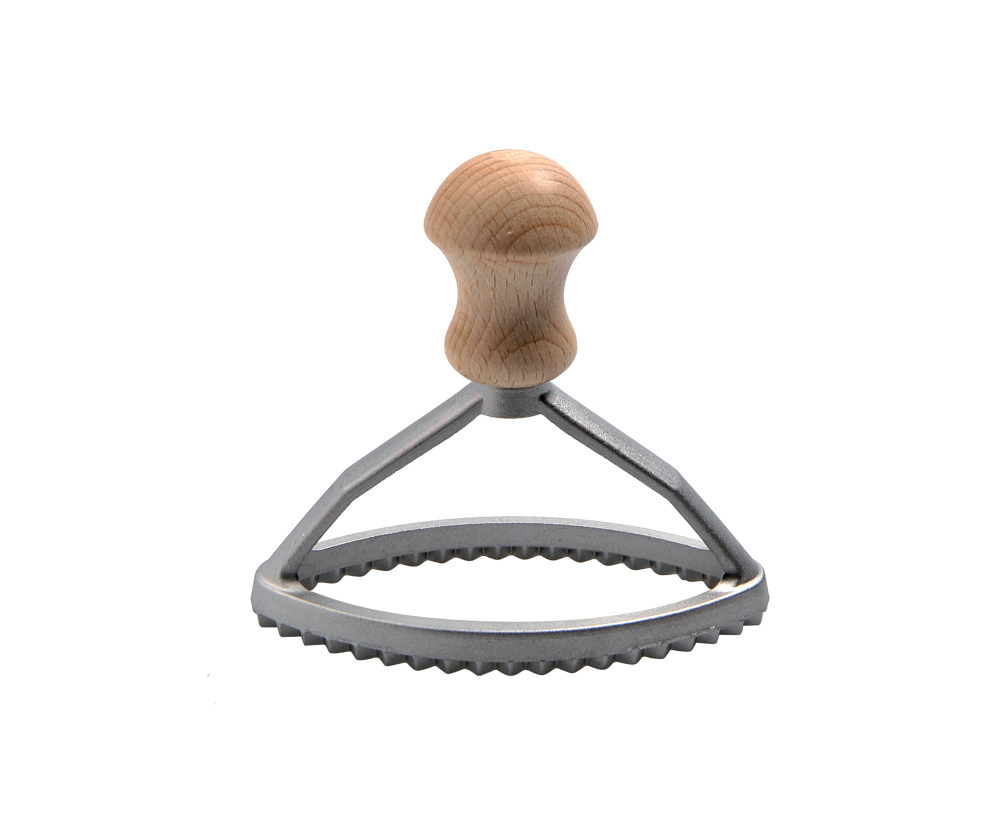 Штампик овальный итальянского бренда Eppicotispai для равиоли / печенья, 105x50 мм. Материал - алюминий, бук.