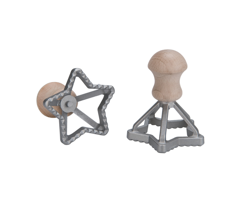 Штампик в форме звезды Eppicotispai для равиоли / пиццы / печенья, стороны 70х70 мм. Материал - алюминий, бук.