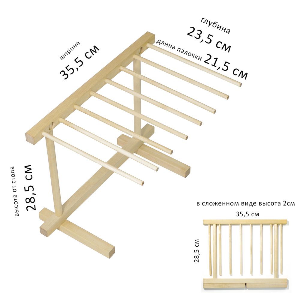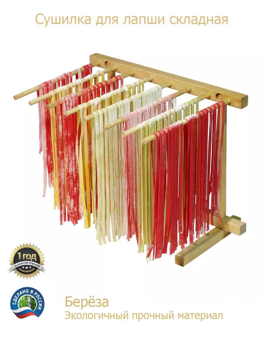 Деревянная складная сушилка для макаронных изделий - незаменимый помощник на кухне каждого любителя домашней пасты. Это удобное и компактное приспособление выполнено из твердой породы древесины - березы, которая отличается своей прочностью и долговечностью. Изготовлено российскими мастерами из российских материалов. Минималистичный дизайн сушилки впишется в любой интерьер кухни, а ее компактные размеры позволят сэкономить место в шкафу или на столешнице. Горизонтальные стрежни сушилки обеспечивают равномерное высыхание макарон, спагетти, лапши, предотвращая их слипание и деформацию. Сушилка для макаронных изделий не только функциональна, но и эстетична. Теплота дерева и естественный цвет березы создают уютную атмосферу на кухне и делают процесс приготовления пасты еще более приятным. Эта сушилка станет отличным подарком для тех, кто увлекается кулинарией и любит радовать своих близких домашними макаронными изделиями. Сушилка для пасты позволит с легкостью организовать процесс сушки и сэкономить время на приготовление вкусного и полезного обеда или ужина.