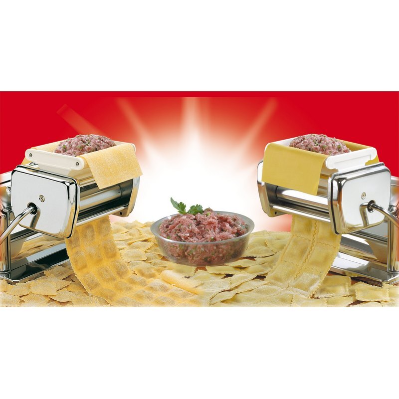 Насадка для приготовления равиоли и пельменей. Благодаря ей вы получите сразу 3 ряда равиоли размером 3x3 см. Подходит для моделей Titania Imperia 190, iPasta Imperia 100 с шириной вала 150 мм.