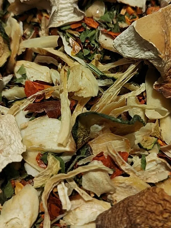 перец чили, чеснок, смесь грибов, петрушка, лук, помидоры, кабачки, соль и натуральные ароматизаторы