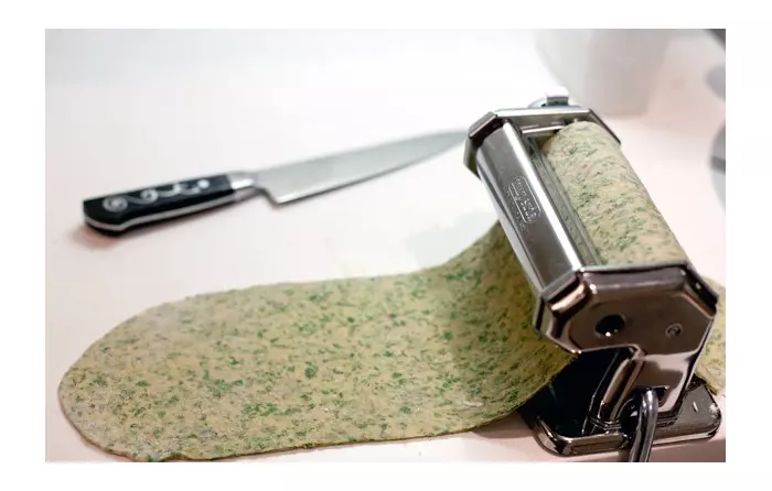 Совсем другое дело, если у вас есть итальянская пастамашина. Раскатать тесто с ее помощью проще простого. Разве что ширина раскаточных валов позволяет подготовить тесто для порционных рулетов, а не одного больших размеров. Но это даже к лучшему.