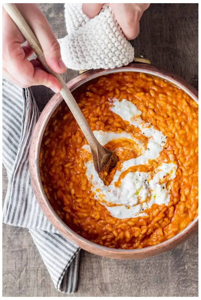 Томатное ризотто – простое и сытное повседневное блюдо, которое вы можете сделать особенным, добавив сыр страчателла. Страчателла усиливает сливочный вкус ризотто, не перекрывая его вкус. Если вы не можете найти страчателлу, выберите буррату или моцареллу, мелко нарезав ее.